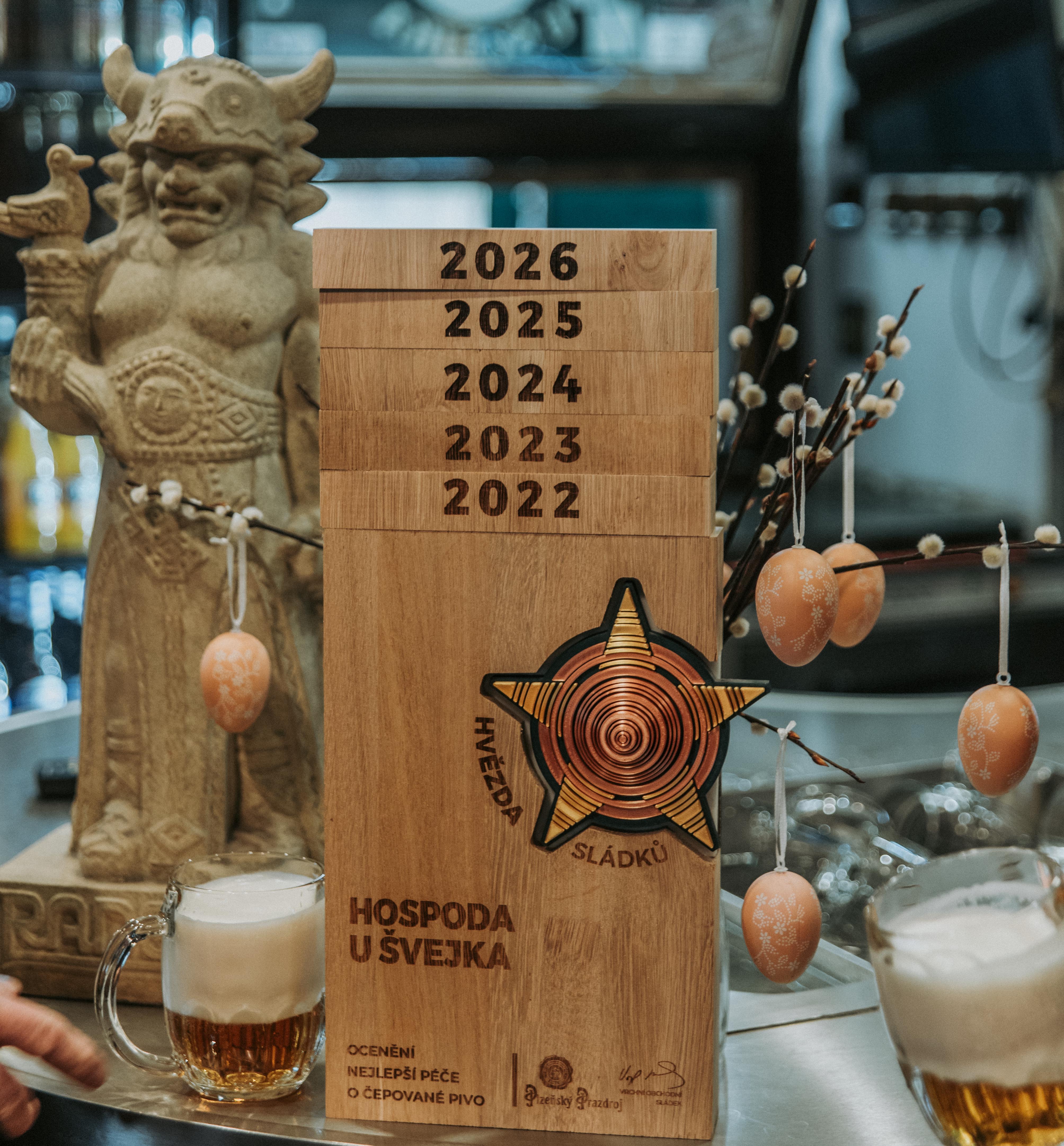 S hrdostí vám oznamujeme, že Hospoda U Švejka obdržela prestižní ocenění HVĚZDA SLÁDKŮ za vynikající péči o pivo. Toto ocenění je důkazem našeho závazku poskytovat vám jen ten nejlepší pivní zážitek, a to s maximální pečlivostí a poctivostí. Získání "Hvězdy sládků" není pro nás jen ocenění, je to pro nás i výzva. Chceme vám ukázat, že si vaši důvěry vážíme a že se budeme i nadále snažit o to, abychom vám v naší hospodě nabídli ten nejlepší pivní zážitek.